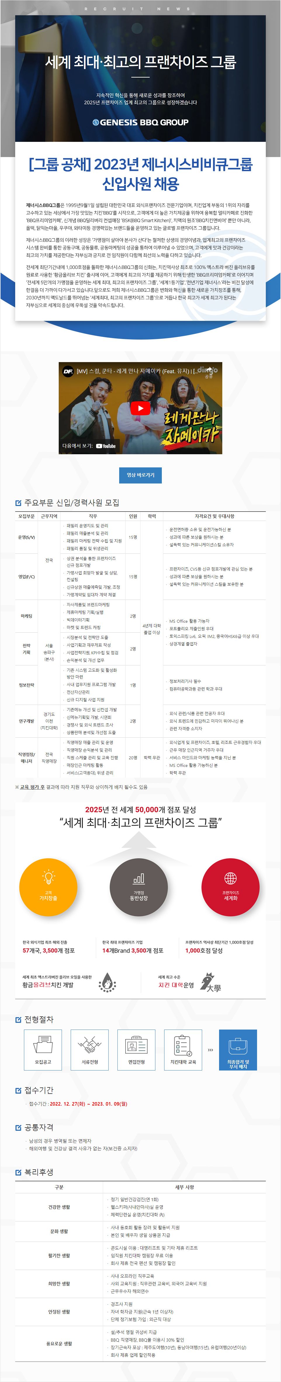 [그룹 공채] 2023년 제너시스비비큐그룹 신입사원 채용